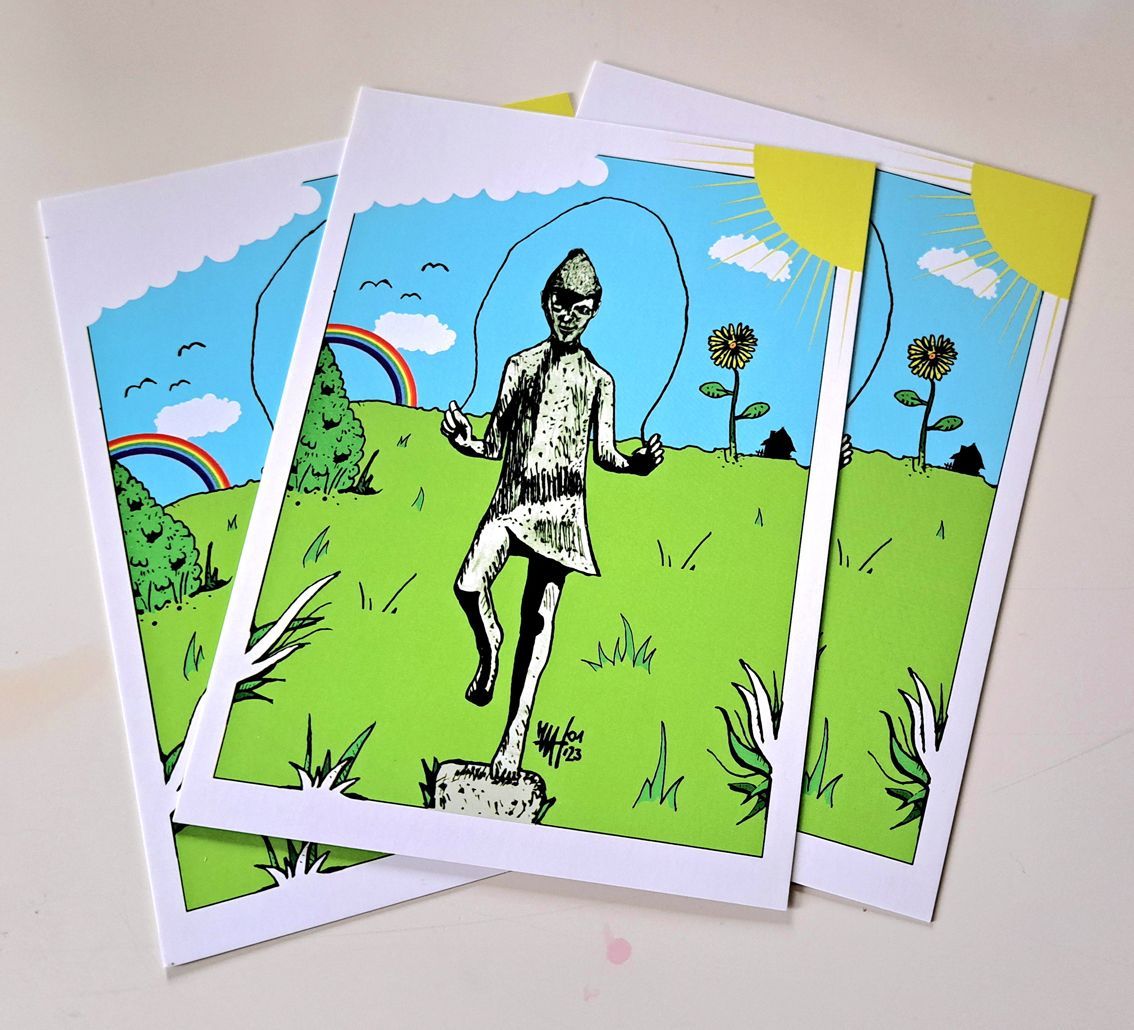 Momentan auf Lager sind die Postkarten "Kindelsbergturm", "Breitenbachtalsperre", "Vielfalt" sowie "Seilspringendes Mädchen" (als Winter- und als Sommer-Variante).